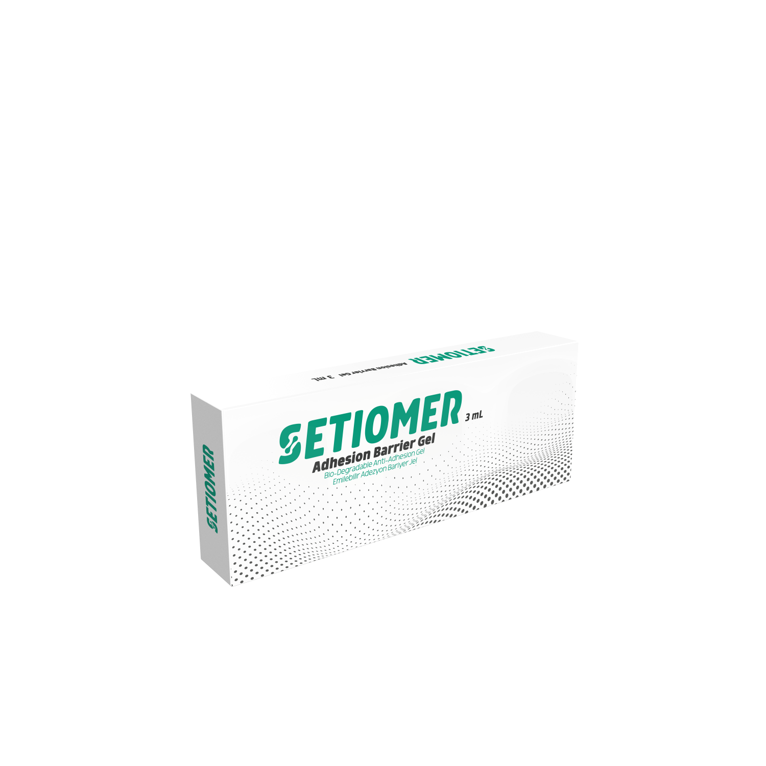 Setiomer Adhesion Barrier Gel is composed of a highly purified, cross-linked hyaluronic acid and is both bioresorbable and biocompatible.